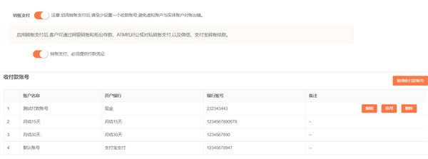 企业先在系统里登记好自身的收款信息。客户提交订单后,订单会处于待付款状态,这时客户若选择线下支付,需挑选企业登记过的对应收款信息,接着上传转账截图作为凭证,上传后订单状态就会变为待确认。企业能够在后端对收款信息进行单个或批量确认,确认完成后订单便进入已收款状态。
