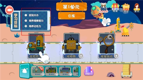 点击进入逻辑思维馆,这里每个单元的学习目标各不相同。