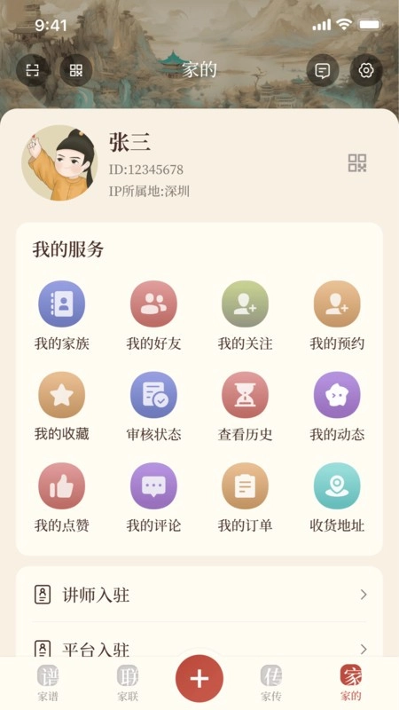 具备宗亲会服务与讲师入驻功能,助力后续传承并建设幸福好家庭。