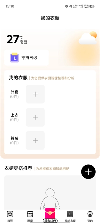 打开好搭盒子,点击下方智能衣柜,点击+号添加衣服裤子;