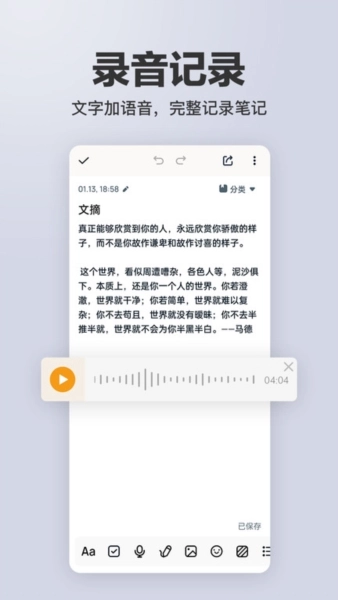 花样记事方法,能顾以文本、照片、摄影、录音和涂鸦、文件的方式记录信息