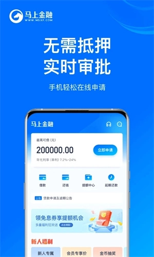 马上金融是一款专注于为用户提供分期贷款服务的金融理财工具。用户不仅能通过这款软件申请不同额度的贷款业务,还可借助安装最新版的马上金融,使用消费借贷、分期消费、购物服务等丰富功能,全方位满足各类需求。