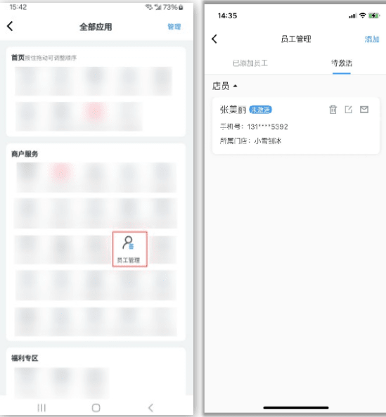 支持对店长和店员进行添加与查看操作,新添加的角色需通过拉卡拉实名认证方可完成激活。店长的主要权限包括: