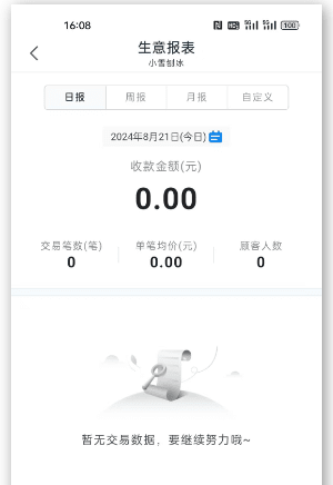 在拉卡拉首页,通过点击【生意报表】,或者先点击【全部应用】再选择【生意报表】,都能进入该页面。此页面支持查看按日、周、月划分,或是自定义时间范围的交易汇总数据。