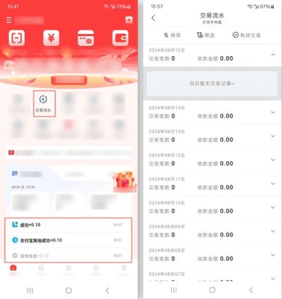 支持从付款方式、交易状态、收款工具、交易类型等多个维度,查询筛选指定时间范围内的交易流水情况