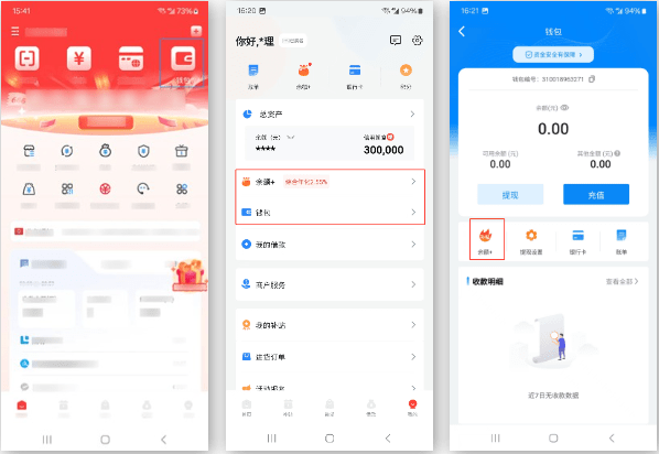 在拉卡拉首页或者【我的】页面,点击【钱包】就能使用钱包功能,要是开通“余额+”的话,还可以享受补贴收益。