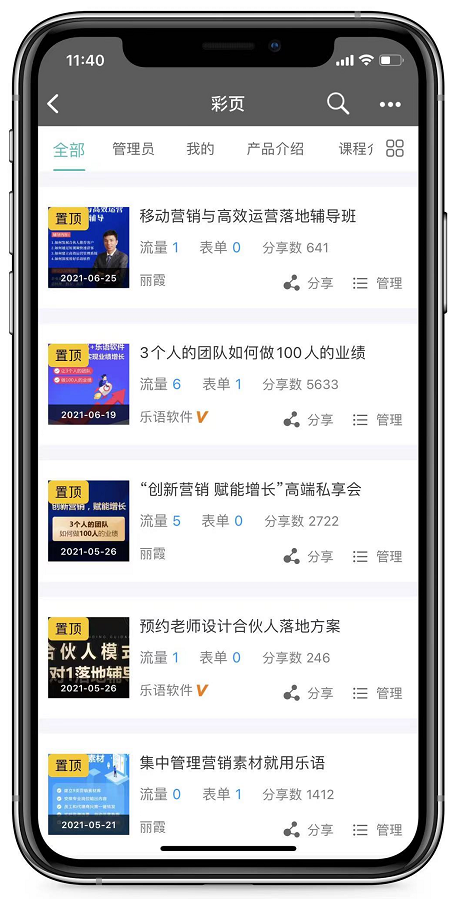 分享数:展示该彩页的分享次数,此数据仅统计通过乐语渠道进行分享的次数。