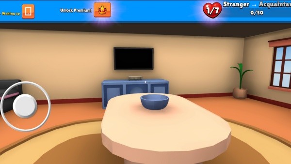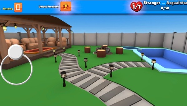 可以借助虚拟摇杆操控角色在庭院里行动,像浇花、荡秋千这类互动行为,能够持续增加幸福感指数。