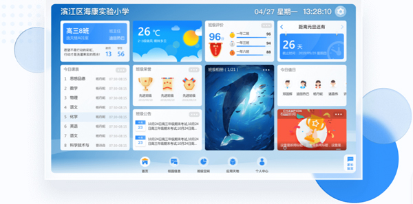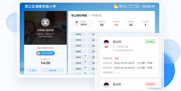 全面信息发布服务能够有效提升校园与班级文化建设的水平,为学校五育并举的推进提供助力;而考勤、家校通、请假等一系列智能服务,则让班牌真正成为学生在校园里的智能交互终端。