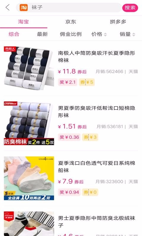 4、具备筛选功能,可依据佣金比例、价格、销量等相关信息对商品进行筛选。