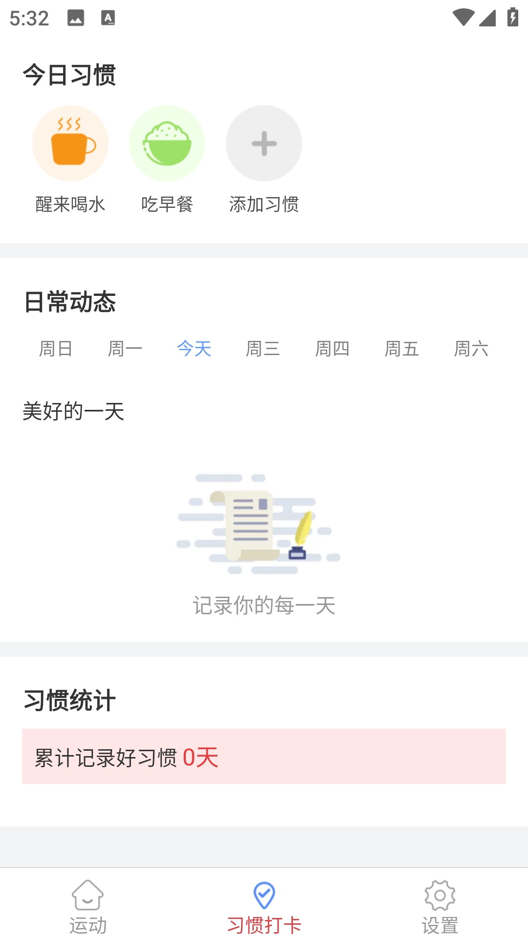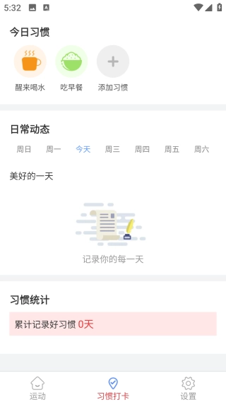 4、进入【习惯打卡】界面,轻点【添加习惯】按钮,选中习惯图标,每天进行打卡就可以了。