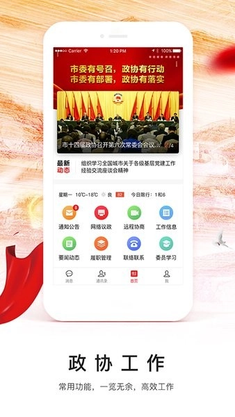 这里支持人们开展新闻资讯阅览、通知公告查看、工作信息管理以及委员学习等功能操作。