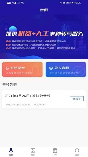 转写精灵,一款专注于文字语音转换的软件。在这里,你只需导入需要识别的语音,系统便会自动识别并转换成文字。要是你对机器转换的正确率心存疑虑,还能提交人工转换订单,把任务交给平台客服进行人工语音转写,精度更高,也更准确。如此好用的软件,你还在犹豫什么?赶紧行动起来吧!