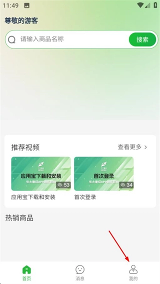在华大康成的首页,点击底部的“我的”选项,即可进入个人中心页面。