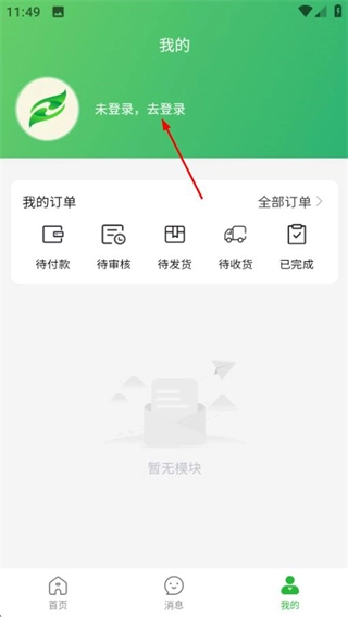 在个人中心页面,点击“未登录,去登录”按钮即可进入登录界面。