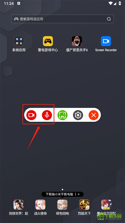 之后就能看到一个录制的悬浮窗口,录制内部音频时把麦克风功能打开,接着点击摄像头图标启动录制