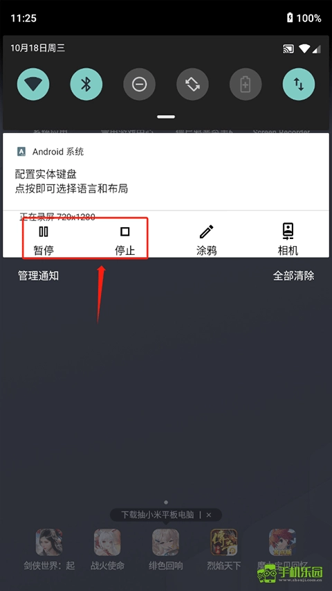 录制时,手机内部的任何声音都会被收录进去;录制结束后,下拉手机的状态栏,找到并点击停止按钮即可。