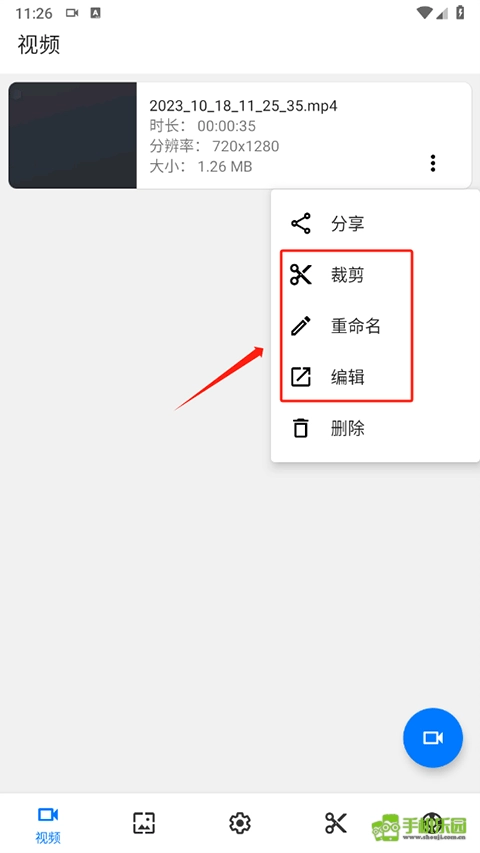 同时点击视频右侧的三点图标,还能对视频进行裁剪、编辑、重命名等操作。