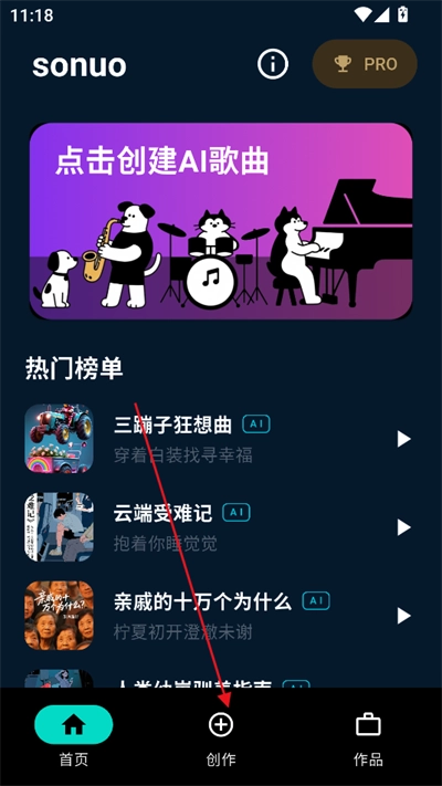 点击“创建”按钮后,软件会利用AI技术来完成音乐创作。
