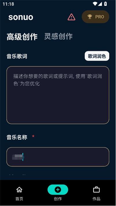 灵感:支持通过输入文本描述灵感,再结合文案来创作音乐。