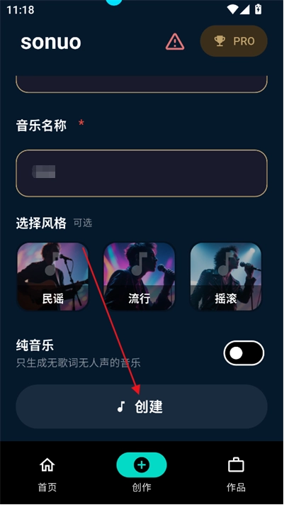 - 创作:只需输入歌词与作品名称,再选定心仪的风格,就能生成对应的音乐作品。