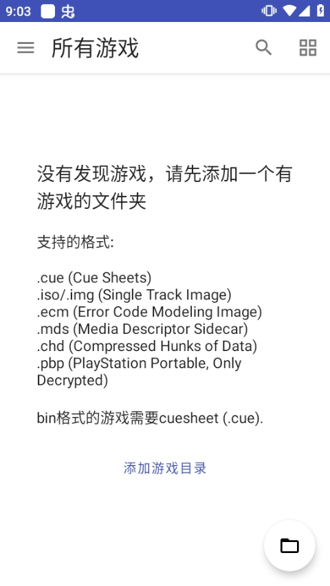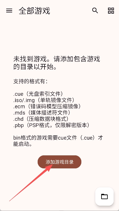 回到主界面后,点击“添加游戏目录”选项,接着选择PS1游戏文件。