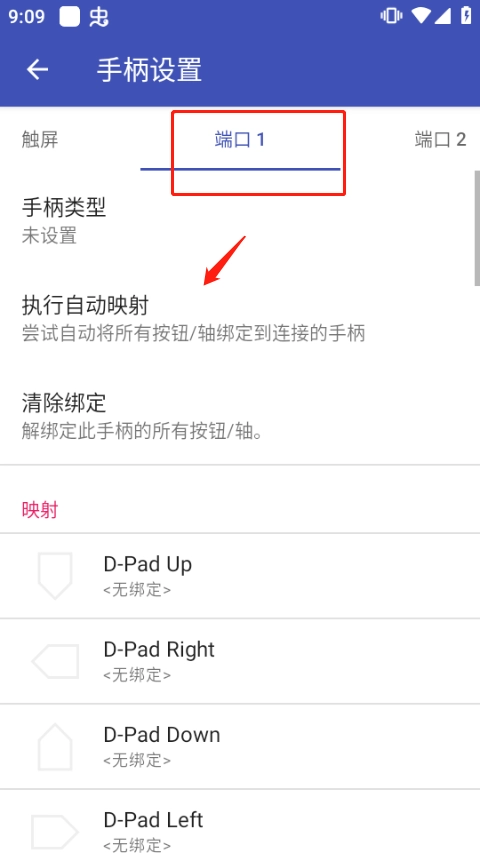 在顶部切换到“端口1”页面,接着点击“执行自动映射”按钮。