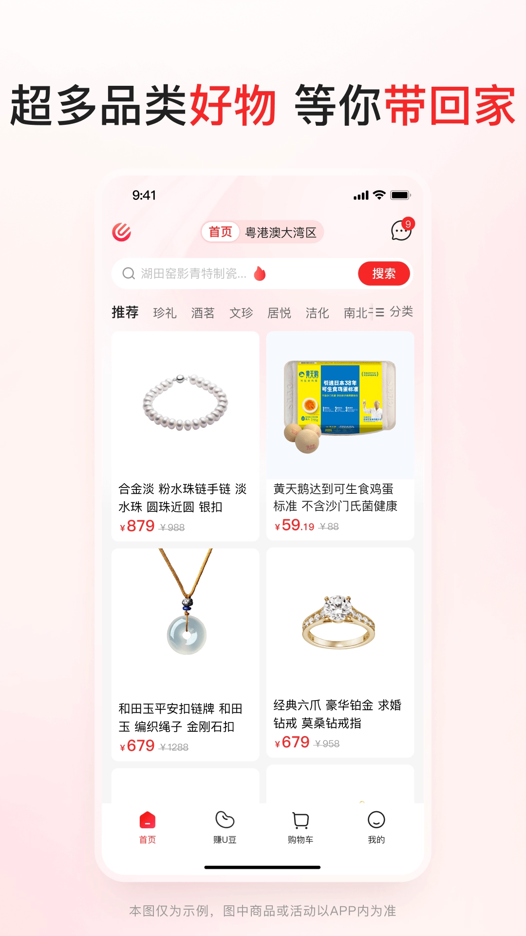 精准搜索,快速锁定心仪好物,浏览商品详情,若觉得满意,即可用u豆一键完成购物。
