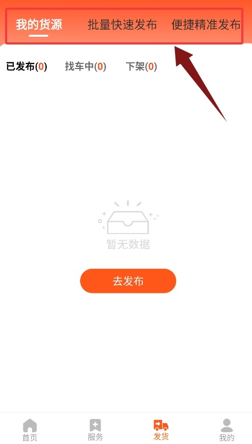 发货界面可用于管理我的货源,并且支持批量发货以及便捷发布的功能。