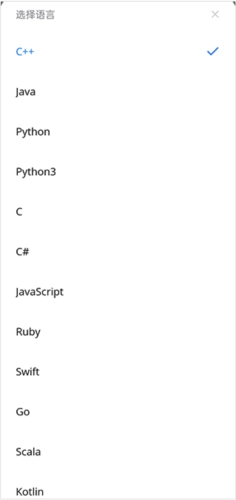 支持超过13种编程语言,包括Ruby、Swift、Kotlin、C、C++、Java、Python、Javascript等,让程序员能够自由选用自己熟悉的语言,从而将精力集中在算法本身,而非语言层面的适配与学习上。