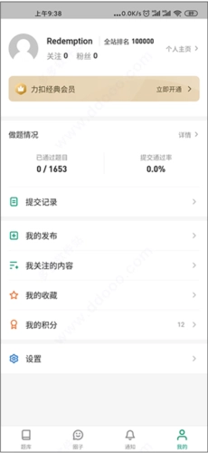 最后,在“我的”页面中可以查看自己收藏的内容、关注的对象、发布的动态以及做题情况等信息。