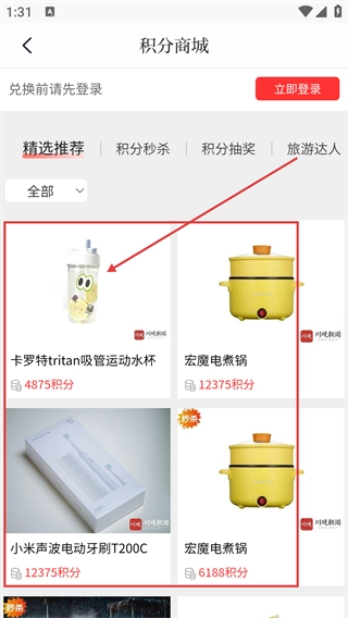 进入个人功能页面后,点击【积分商城】选项,就能进入积分兑换的商品展示界面,查看可以兑换的好物。