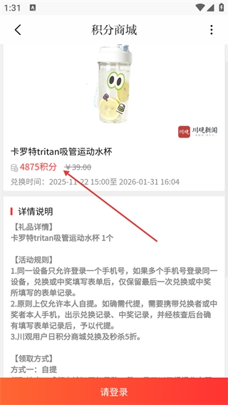 进入商品详情页面后,就能看到该商品兑换所需的【4875积分】,以及兑换时间、相关规则等信息,方便大家为积分兑换提前做好准备。