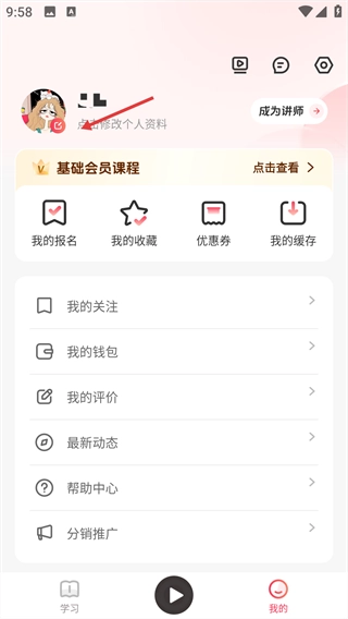 打开千聊主界面,轻点底部菜单栏的【学习】入口。
