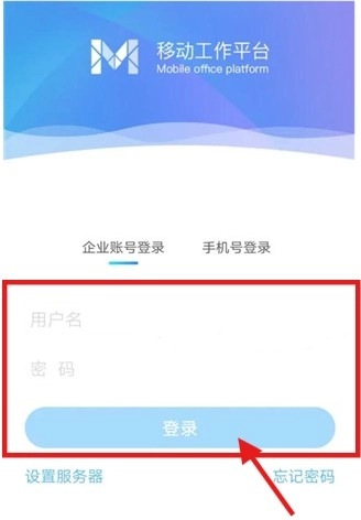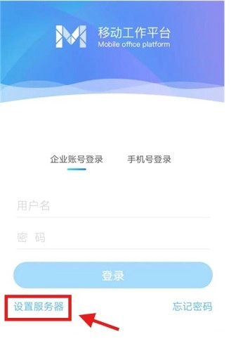 打开软件后,在登录界面,需先完成服务器的设置,之后再输入对应的账号与密码。