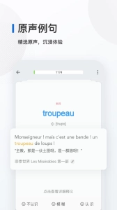 文化彩蛋:法语背单词时,每个单词都搭配有法国电影或漫画中的原句作为例句。