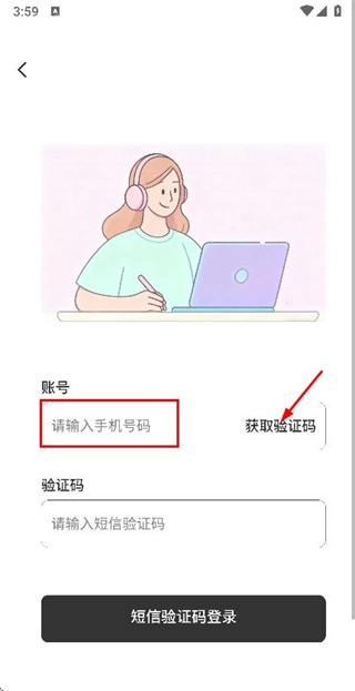 在验证码输入框中填入收到的验证码,随后点击短信验证码登录按钮,即可完成账号登录流程。