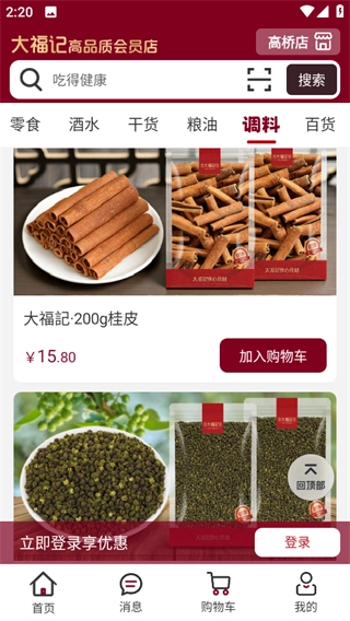 汇集酒水饮料、零食干货、粮油米面等多样精品食材,覆盖用户日常采购的各类需求,无需线下奔波即可一站式选购心仪商品,商品种类持续丰富,满足不同场景的食材采购诉求。