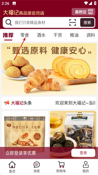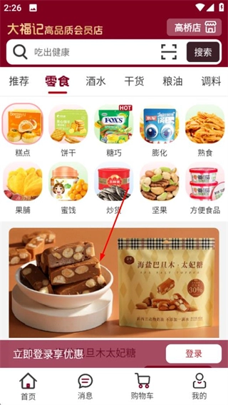 在大福记会员店首页,找到零食分类选项并点击,即可进入零食专区页面。