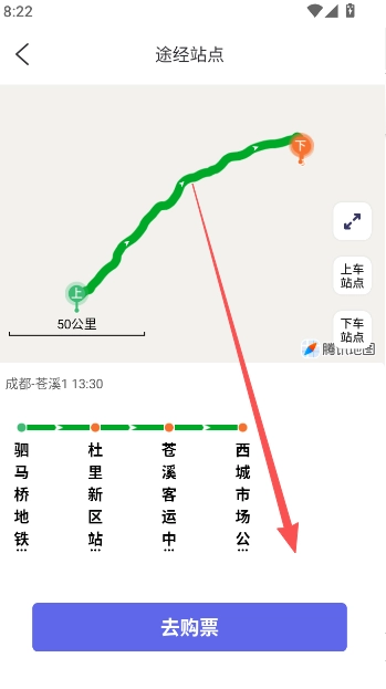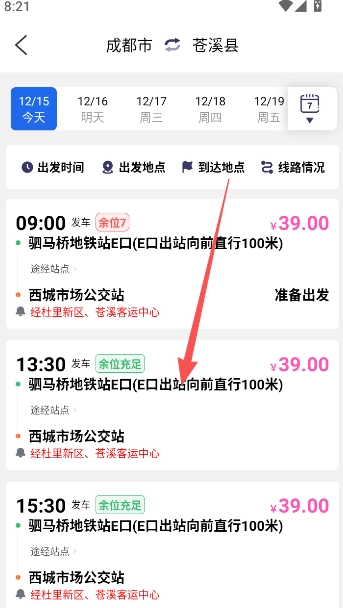 点击一个非最近的时间点车辆发车页面,进入查看详情。