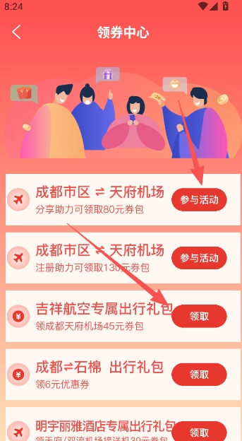 选择以参与活动或是直接领取的方式,获得优惠券。