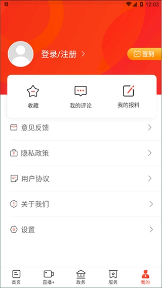 在这个资讯App的首页,点击底部的【我的】选项,进入个人中心页面,以此为后续的功能设置操作做好前置准备。
