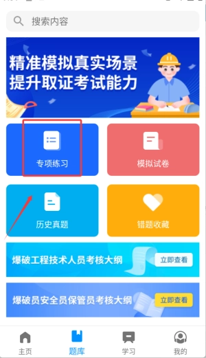 专项练习模块依据爆破作业的知识点进行分类梳理,能够针对专业技能的薄弱部分开展定向训练,从而强化相关能力。