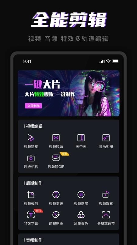 应用程序了丰富多样的视频转场特效,借助这些不同的特效能够让画面呈现出更酷炫的视觉效果。