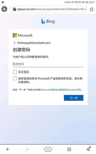 2、点立刻聊天,创建一个outlook账户