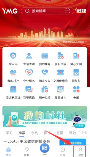 1. 打开“看余杭”应用后,于首页点击“我的”功能选项,从而进入个人页面。