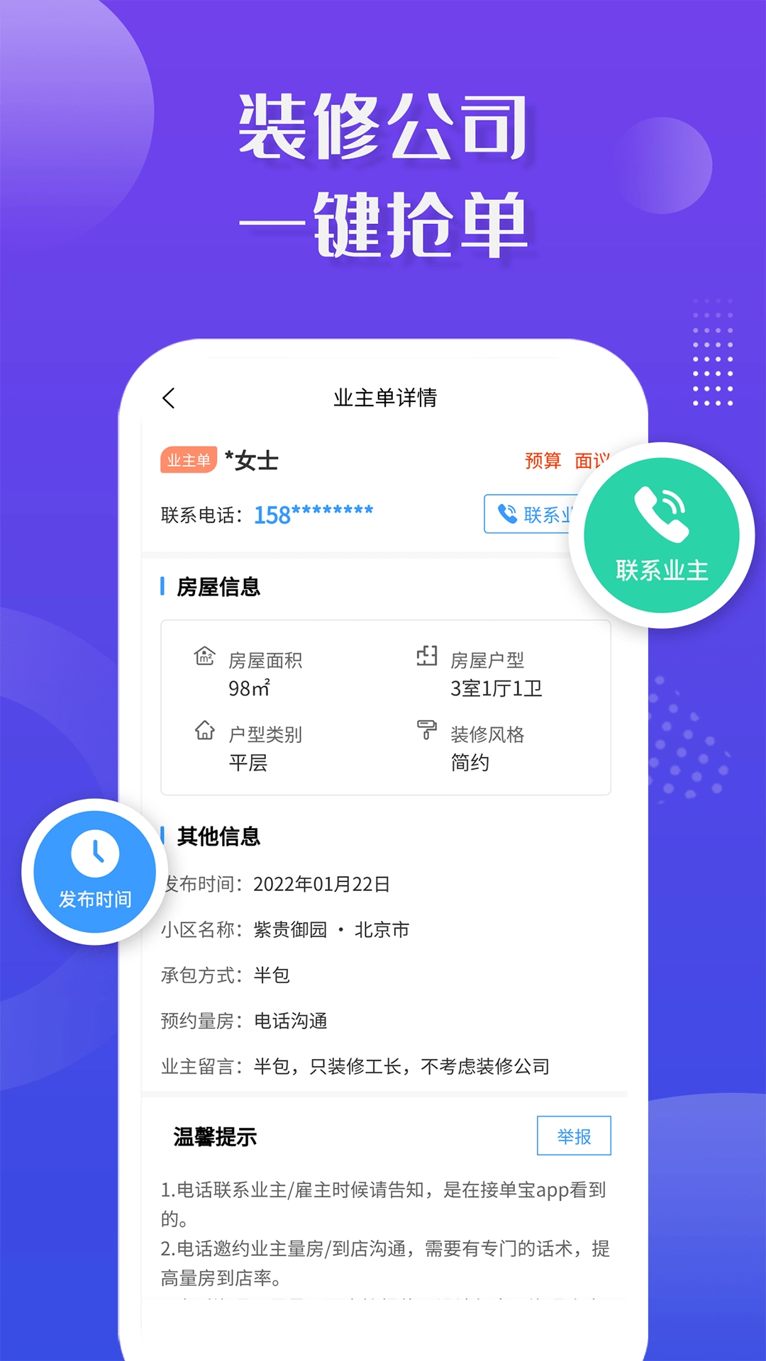 2.汇集了海量的装修需求订单信息,可以根据自己的专业领域和接单偏好,灵活筛选。