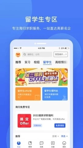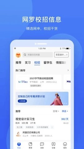 拥有智能匹配算法,可依据使用者的个人履历及求职意向,为其推荐契合的实习岗位。