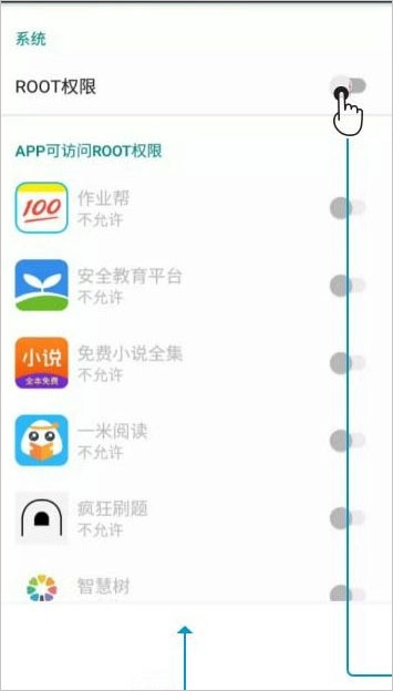 2、首次开启ROOT权限开关时,需点击同意免责声明,否则无法使用root权限管理功能。