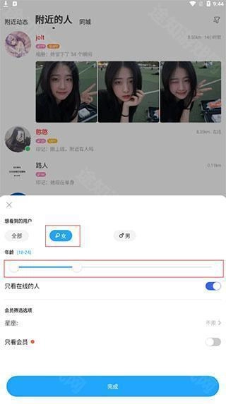 你可以通过右上角的手动筛选功能,设置仅查看女生相关内容以及限定年龄范围。